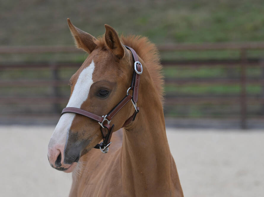 With her beautiful sorrel coat and captivating presence, Breeze has already begun to showcase her potential. Her graceful movement and natural athleticism are testaments to her exceptional lineage and the care with which she was bred.