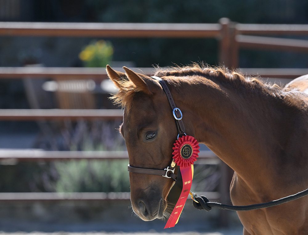 As she continues her training, Clementine shows exceptional promise for sport, demonstrating a powerful yet adjustable stride, a careful front end, and a confident attitude toward new challenges. Her presence, athleticism, and personality embody the quality and character that define the Pomponio Ranch breeding program.