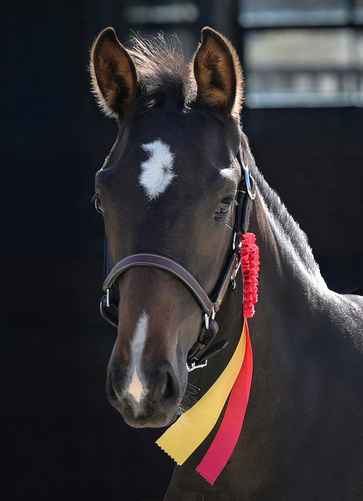 From the start, Confetti has shown a confident, curious nature and a natural athleticism that reflects her elite pedigree. She moves with fluidity and balance, already displaying the grace and presence that define her bloodlines. Her bright personality and gentle disposition make her a barn favorite.